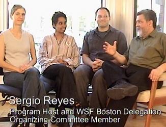 SR -- Well, we will have more information, posted at what has been the Boston delegation's web page, and we'll put that up on your screen in a minute. I just want to end the program with kind of a little game. If you think in just one word, just one word, you would describe your experience at the World Social Forum, what would that be?